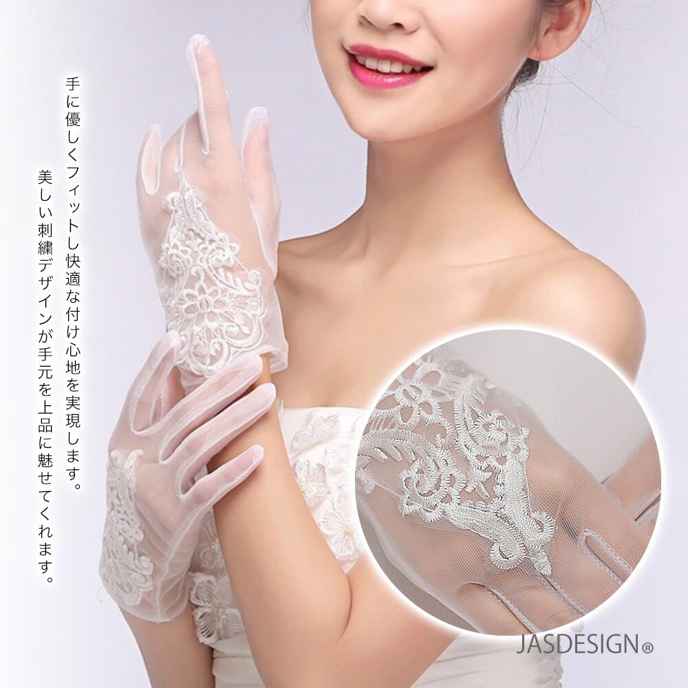 ウェディンググローブ ショート ブライダルグローブ ドレスグローブ ショートグローブ 刺繍 レース 花嫁グローブ 薄手 花嫁 短い グローブ ブライダル 手袋 結婚式 ドレス手袋 フルフィンガー 教会挙式 披露宴 JM-393