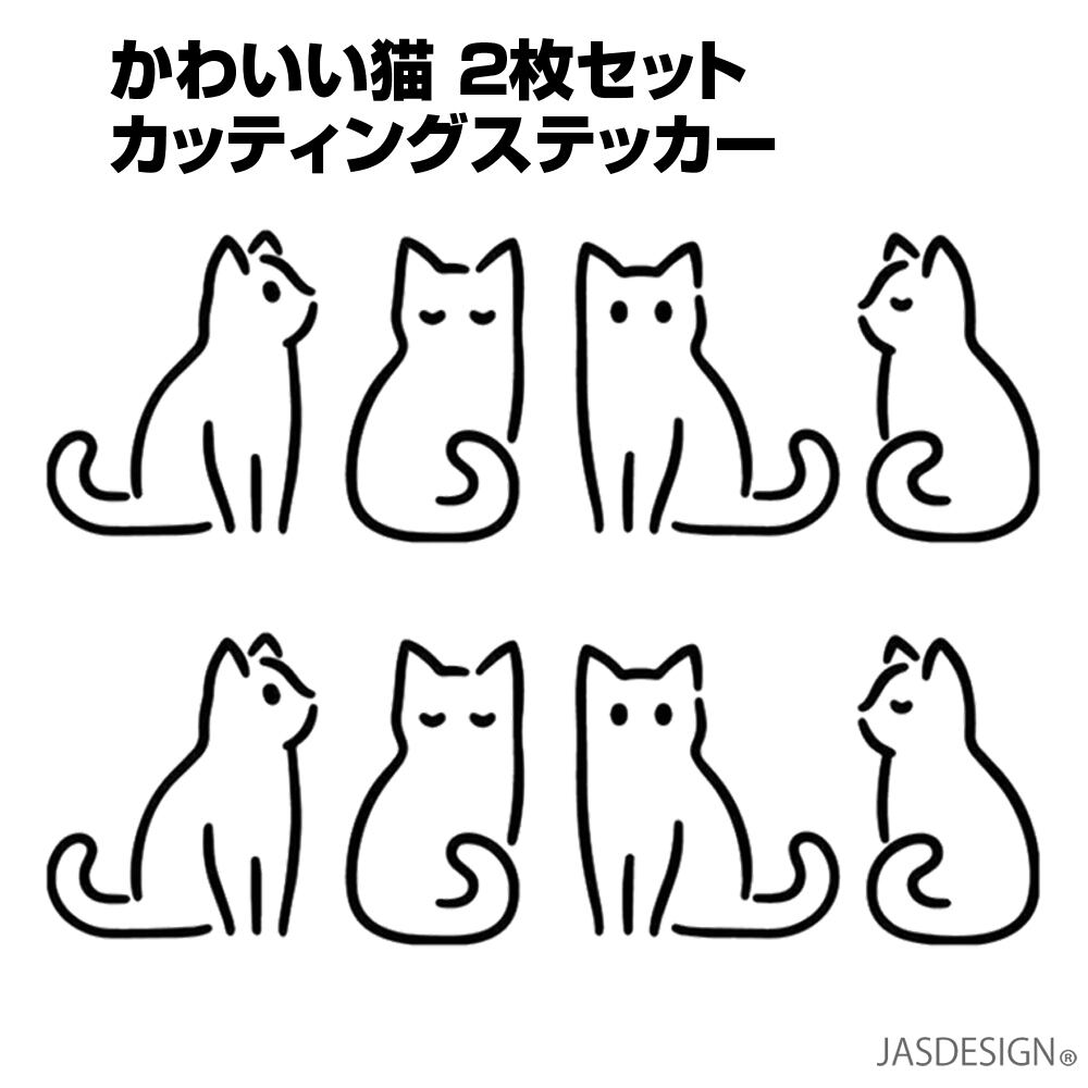 猫 ステッカー 車 バイク ヘルメット カーステッカー 猫シルエット 傷隠し 壁 ウォール パソコン スマホ かわいい おもしろ 防水 シール カッティングステッカー デカール ブラック ホワイト 2枚 JM-392