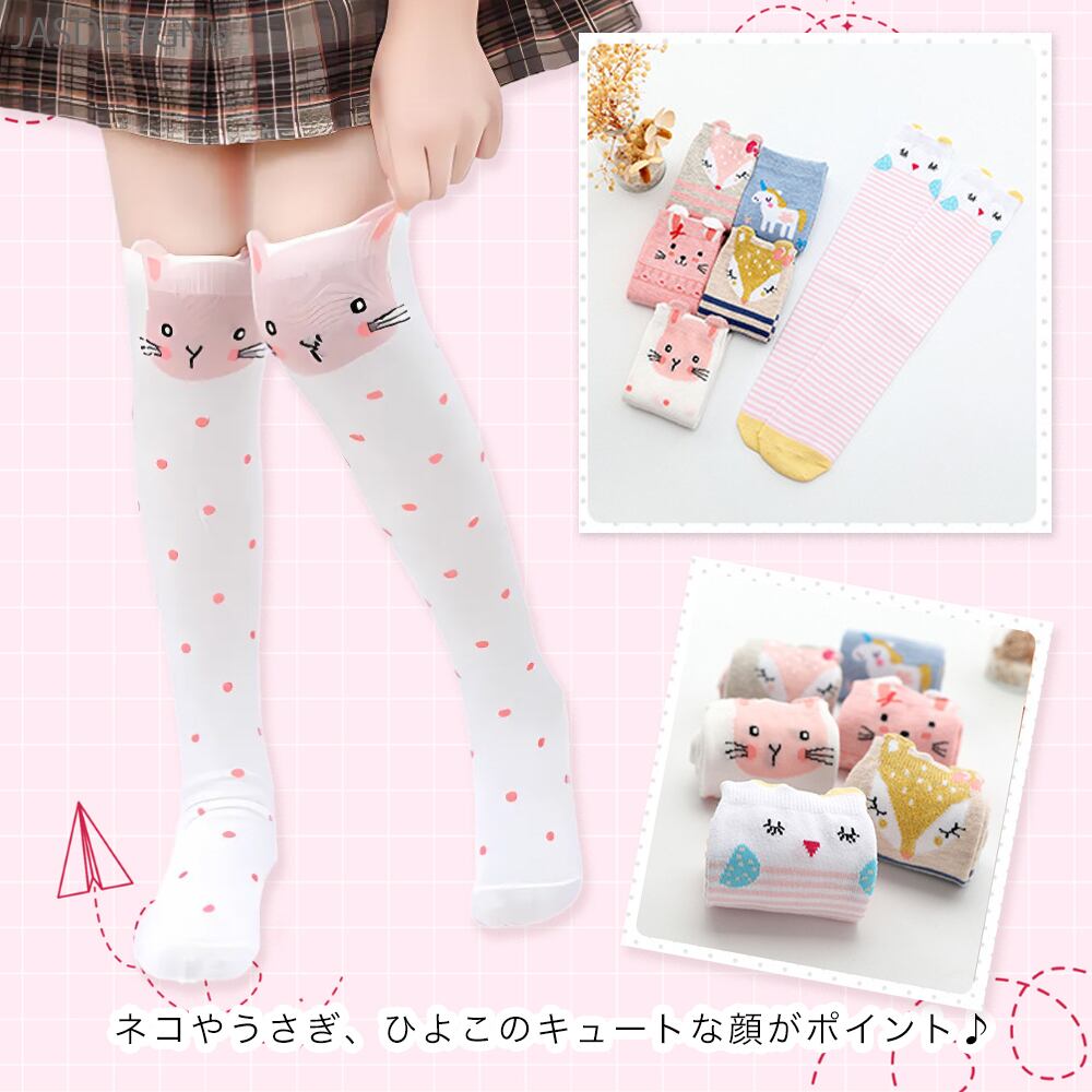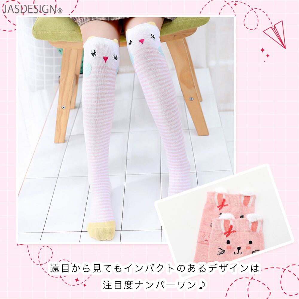 ハイソックス ニーハイソックス 子供 キッズ 靴下 3足組 女の子 アニマル 猫 ねこ うさぎ ひよこ 動物 ボーダー 可愛い ニーソックス フリーサイズ JM-411
