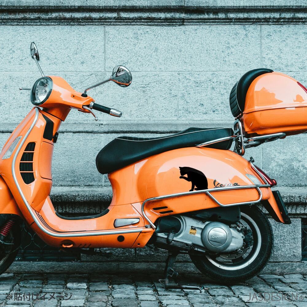 猫 ステッカー 車 カーステッカー 黒猫 毛づくろい リアル バイク ヘルメット 傷隠し 壁 ウォール パソコン スマホ かわいい おもしろ 防水 シール カッティングステッカー デカール ブラック JM-413