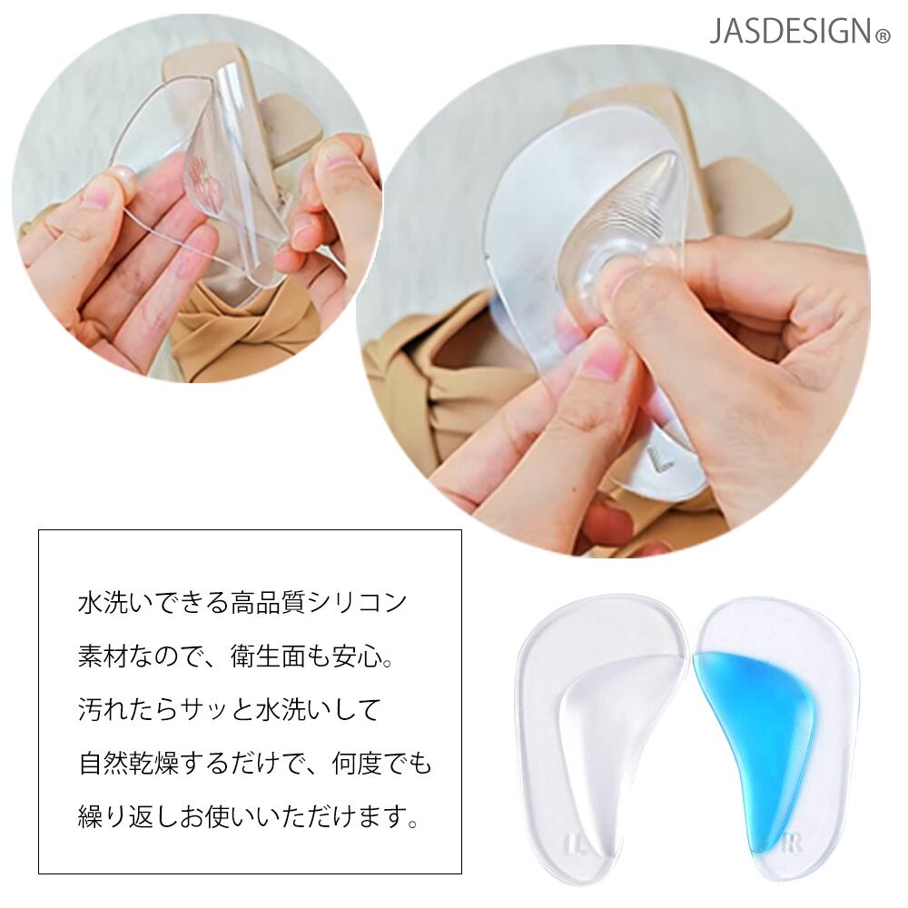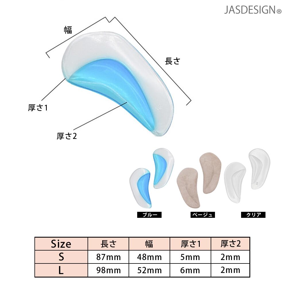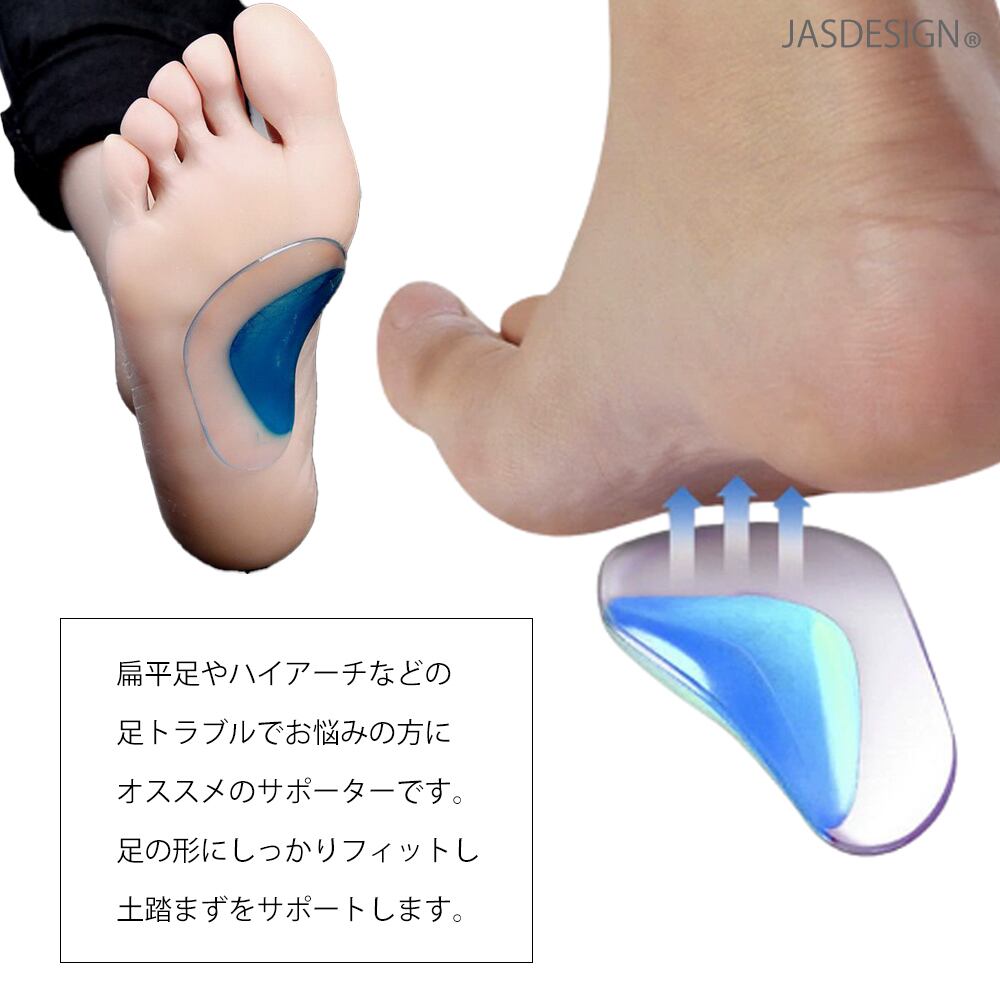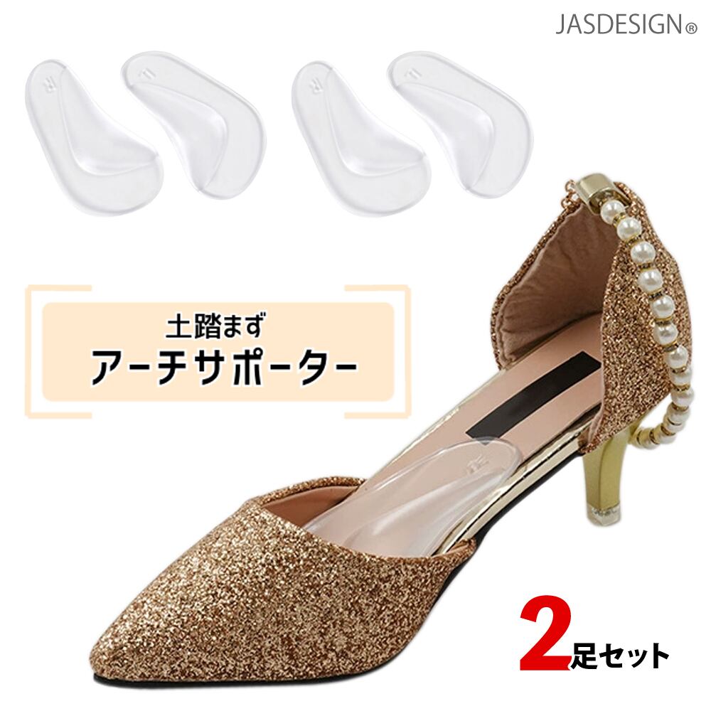 土踏まず 偏平足 サポーター パッド アーチサポーター シリコン クッション インソール 2足セット 足裏 保護パッド 立ち仕事 シューズ サンダル スニーカー パンプス ハイヒール スリッパ 男女兼用 半透明 クリア JM-425