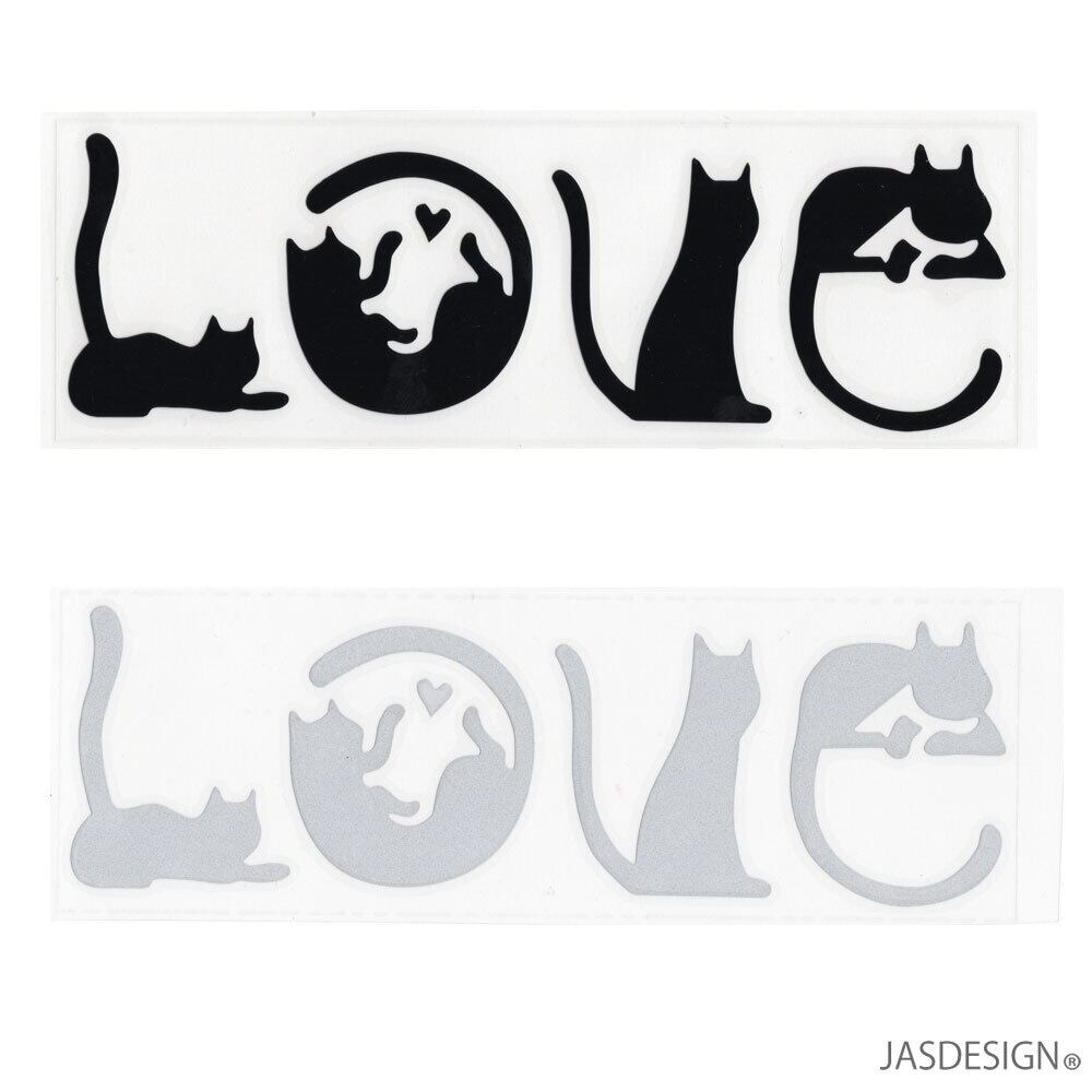猫 ステッカー 車 ネコ バイク ヘルメット 壁 キャリーケース パソコン スマホ 傷隠し LOVE 文字 シルエット かわいい おもしろ おしゃれ 防水 シール ウォールステッカー デカール らぶ ラブ 2枚セット JM-419
