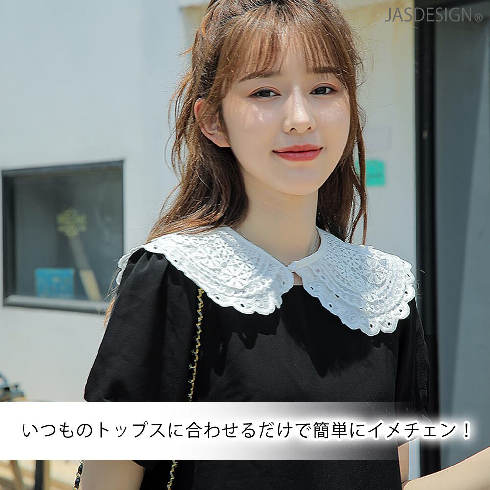つけ襟 付け襟 レース フリル 花柄 ショール 透け感 刺繡 ナチュラル 重ね着 シャツ襟 ワイシャツ襟 ビッグカラー かわいい 角襟 レディース フェイク襟 ブラウス レイヤード 丸襟 リボン ボタン 肩かけ JM-430