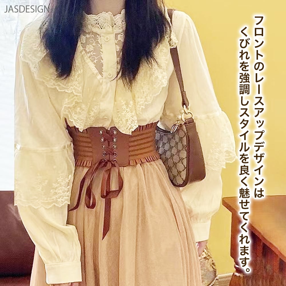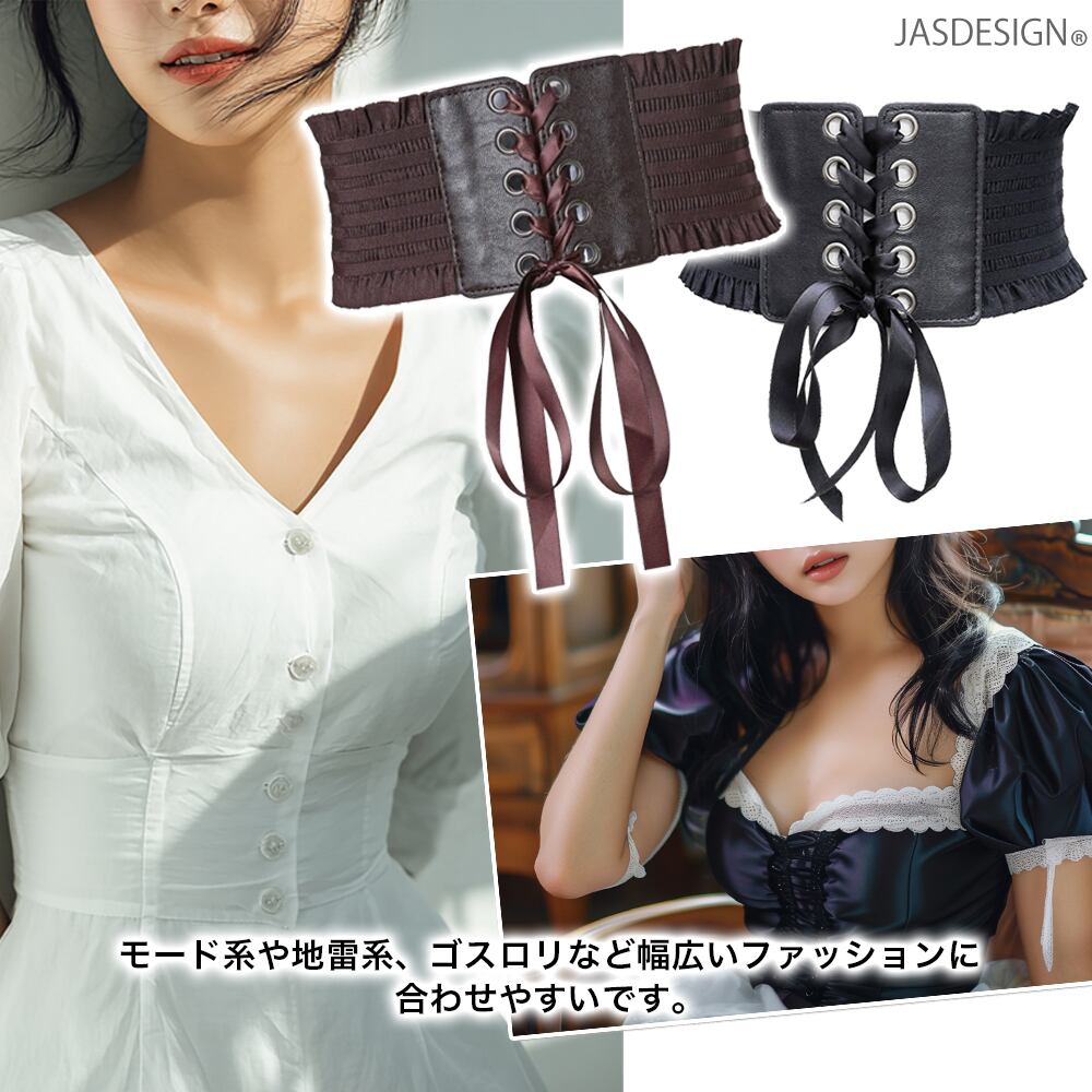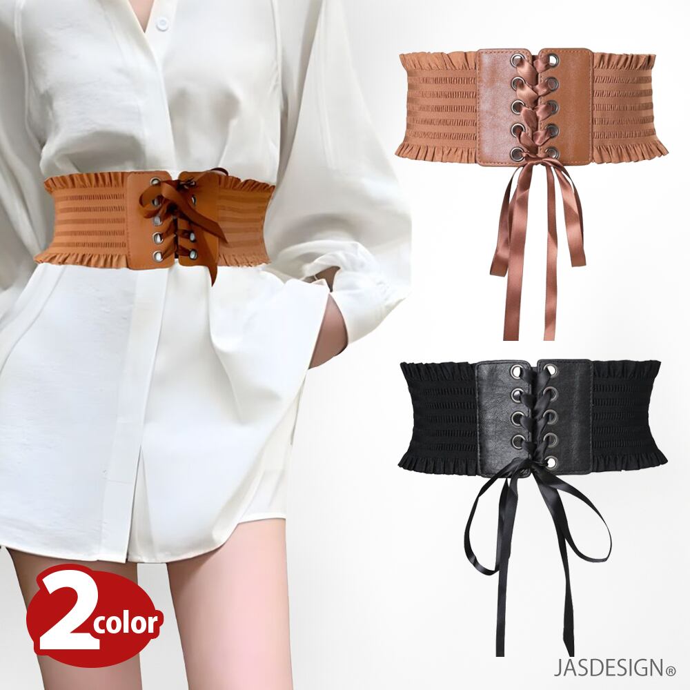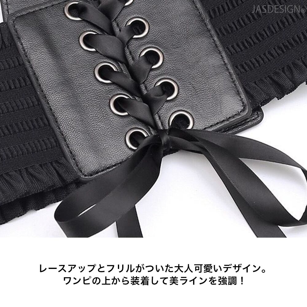 レースアップベルト レディース 太ベルト ワイドベルト サッシュベルト コルセット ベルト レースアップ ゴム リボン スナップボタン付き フリル レザー ゴムベルト 伸縮 伸びる JM-439