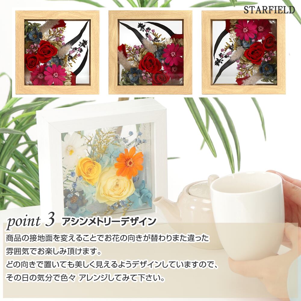 ※メンテナンスについて:生花加工品のため花びらが落ちることがあります。フレームは取り外すことが出来ますのでやさしく取り除いて下さい。(フレームは磁石で固定されています。)