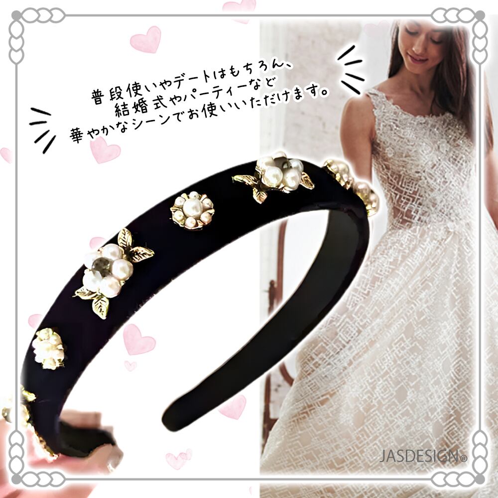 パールとビジューが上品な韓国風デザインのカチューシャです。