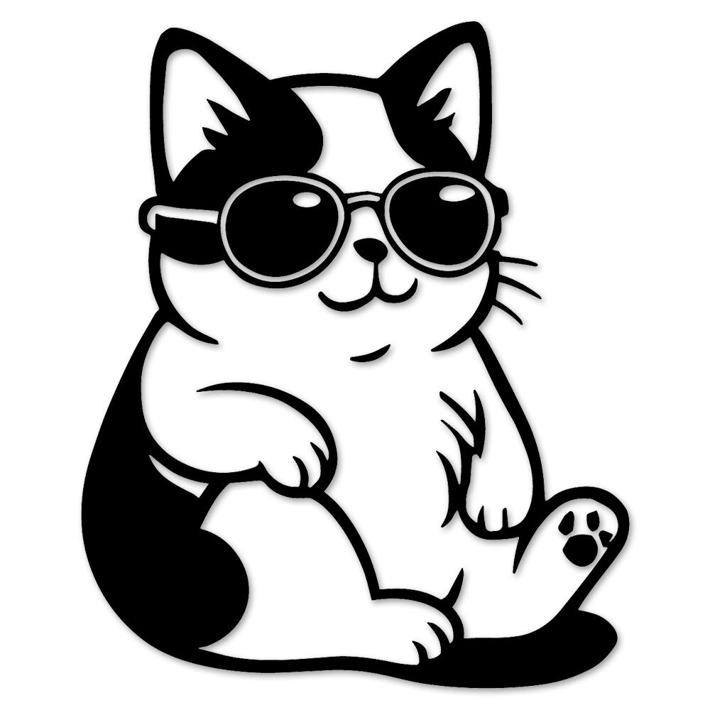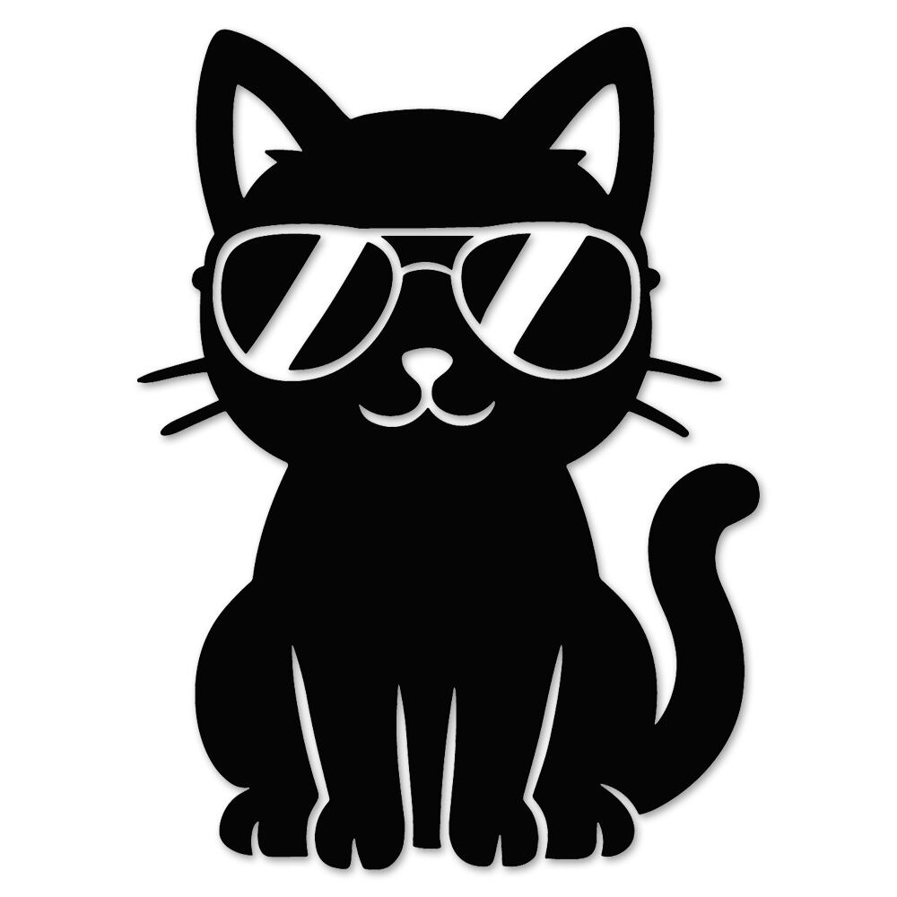 サングラスをした黒猫、キジトラ、サバトラ、ぽっちゃり猫、白猫のシルエットが可愛いステッカーです。
