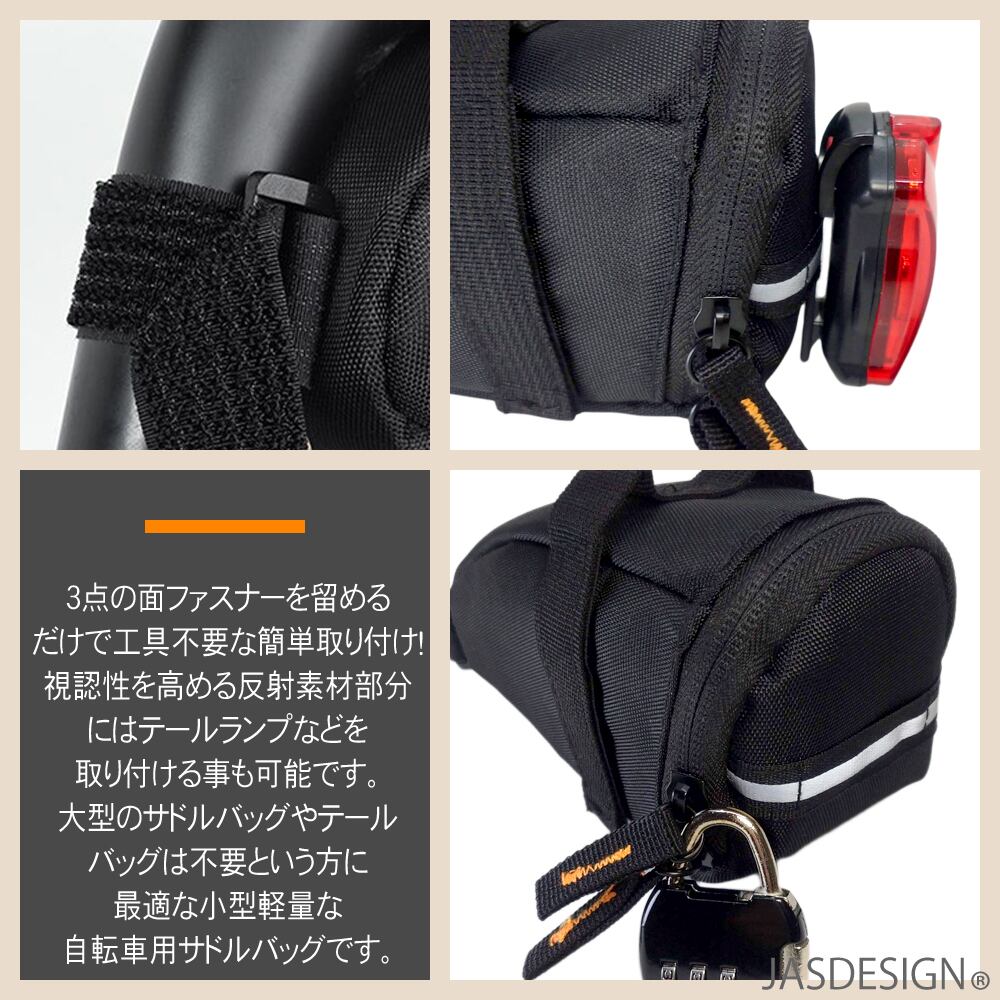 サドルバッグ 自転車 小型 簡単取付 自転車バッグ ロードバイク クロスバイク MTB 自転車用テールバッグ ブラック JM-254