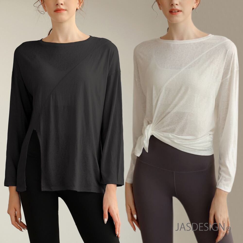 ヨガウェア トップス ロング丈 長袖 Tシャツ レディース サイドスリット かわいい ゆったり JM-260