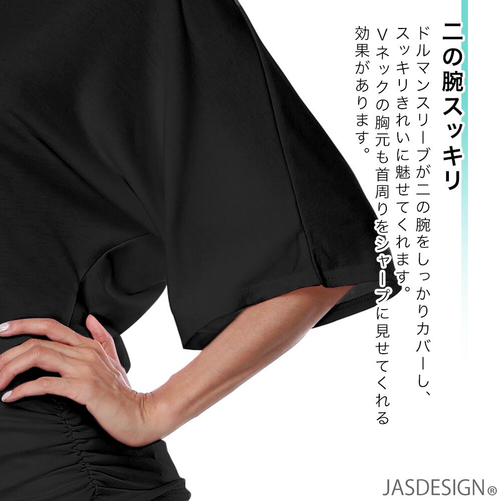 ヨガウェア レディース トップス 半袖 Tシャツ Vネック ロング丈 大きめ ゆったり ヨガ ドルマンスリーブ フィットネス JM-308