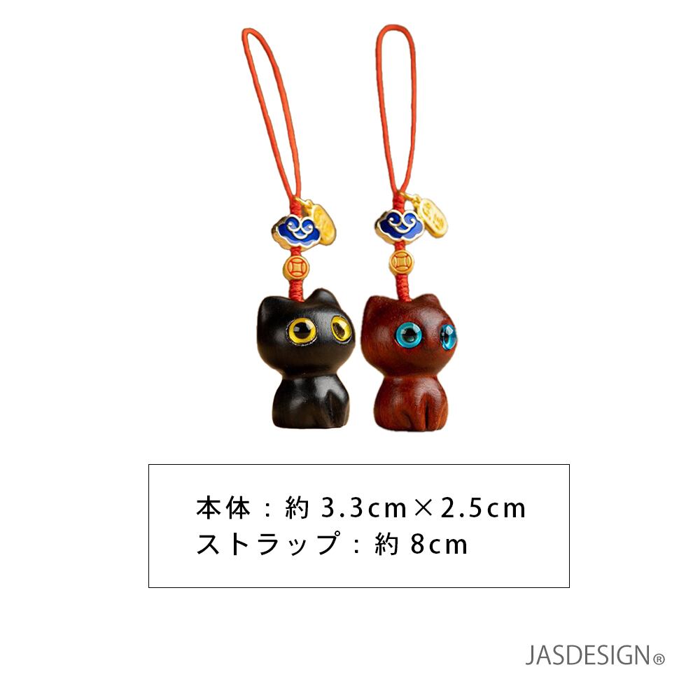 黒猫ストラップ 猫ストラップ ねこキーホルダー 携帯ストラップ スマホストラップ 開運 金運 黒檀 黒ねこ 猫 招き猫 お守り JM-325