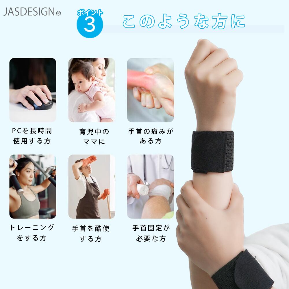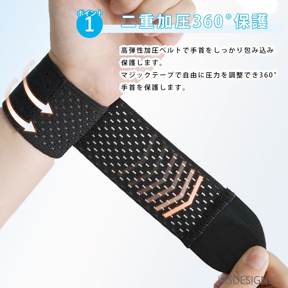 マジックテープで自由に圧力を調整でき360°手首を保護します。