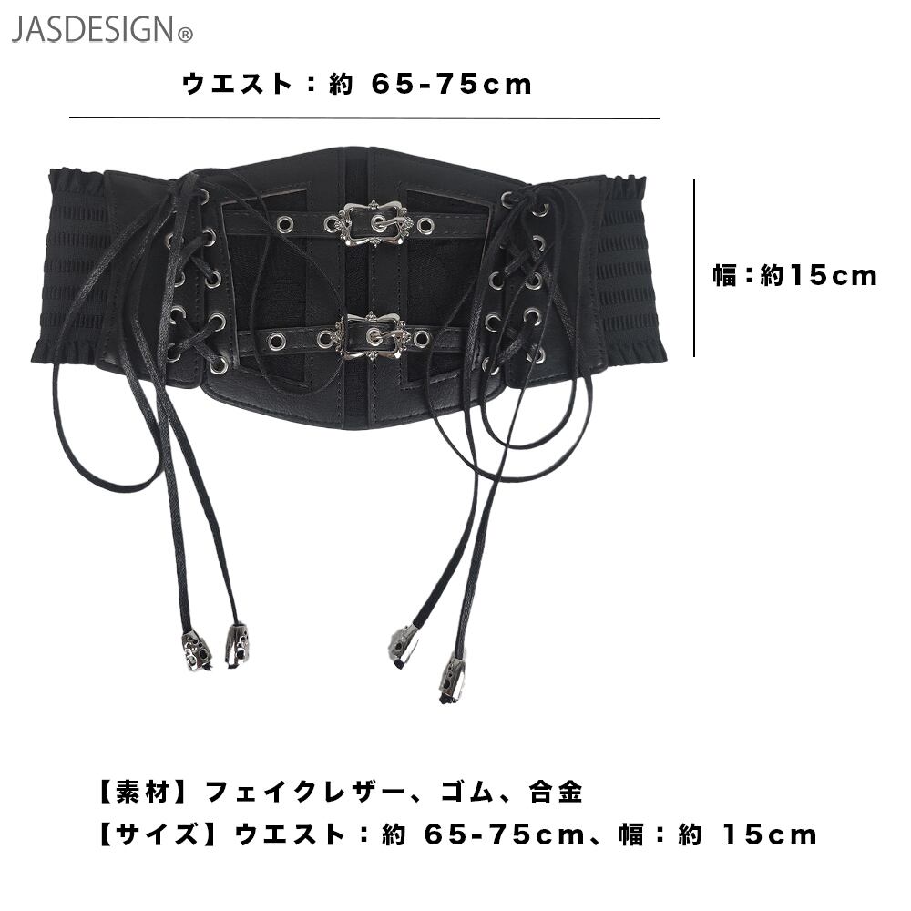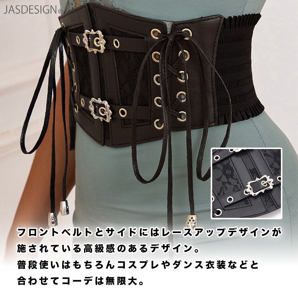コルセットベルト レースアップ 太ベルト 黒 ブラック 地雷系 ヴィジュアル系 V系 モード系 ゴシック ゴスロリ ウエストベルト レザー調 韓国 かわいい おしゃれ JM-360