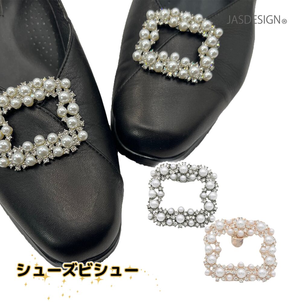 シューズクリップ ビジュークリップ パンプスクリップ シューズアクセサリー 靴クリップ 結婚式 ウェディング スクエア 四角 ビジュー パール ラインストーン 靴飾り 取外しOK 着せ替え JM-361