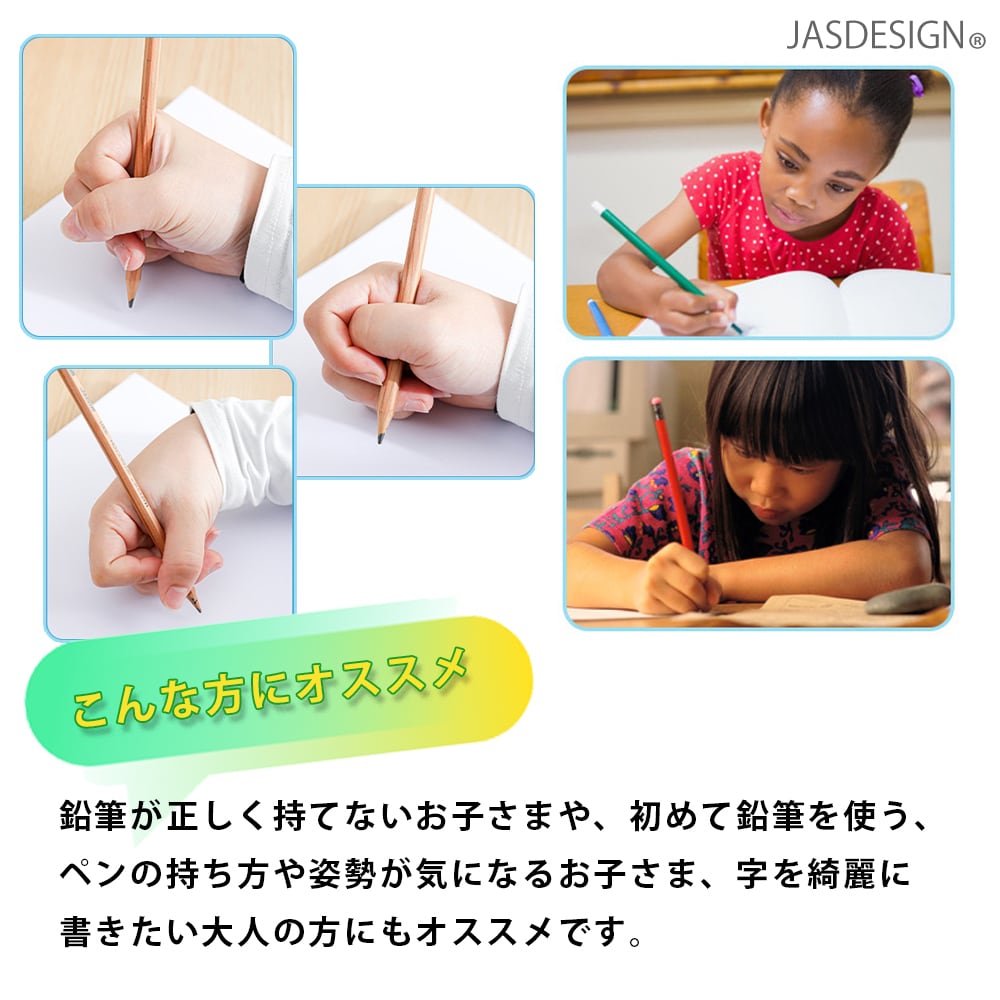 鉛筆が正しく持てないお子さまや、初めて鉛筆を使う、ペンの持ち方や姿勢が気になるお子さま、字を綺麗に書きたい大人の方にもオススメです。