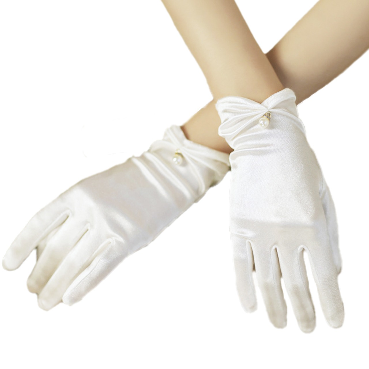 ウエディンググローブ ブライダル手袋 花嫁グローブ 薄手 花嫁 グローブ ショート ショートグローブ ブライダル 手袋 結婚式 オーガンジー サテン シースルー パール 花嫁用品 披露宴 発表会 パーティー JM-369