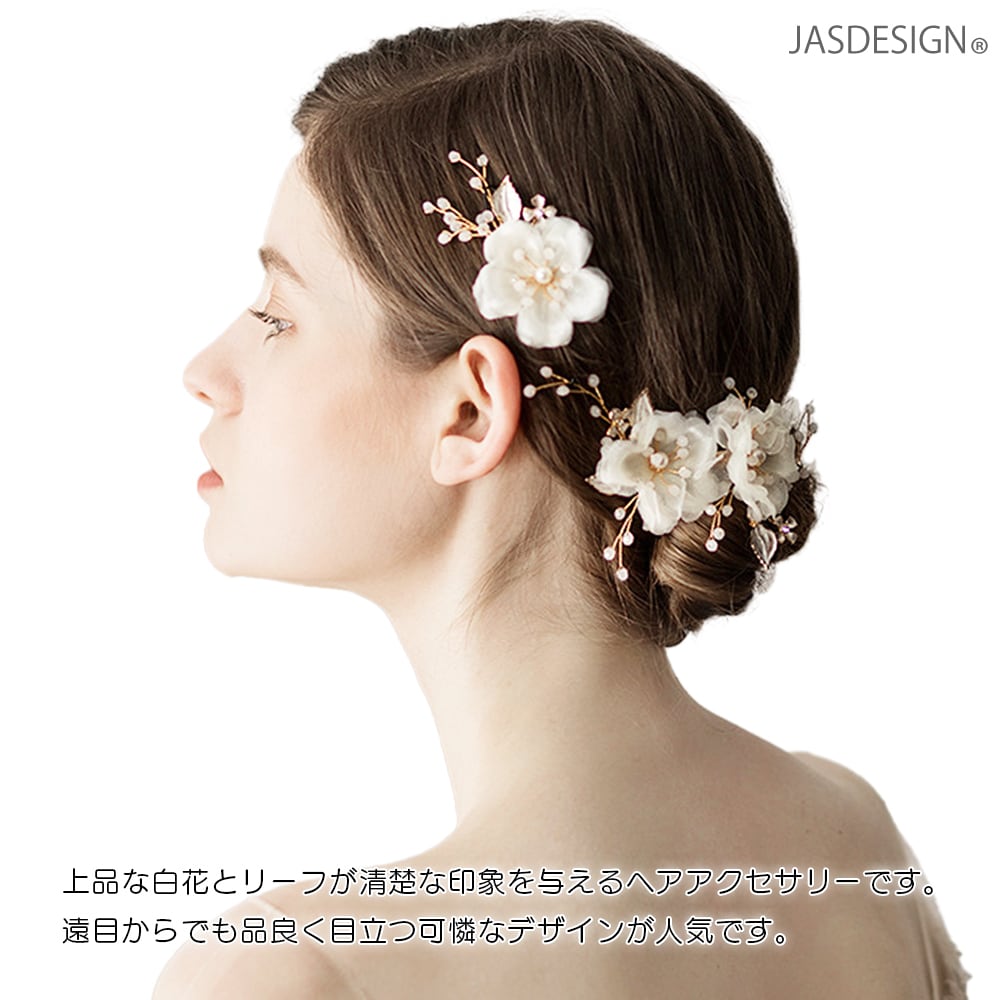 ヘアアクセサリー ヘッドドレス 結婚式 髪飾り 花 リーフ パール ヘアピン ヘアクリップ 白 ホワイト 発表会 ウエディング お呼ばれ パーティー ドレス 浴衣 着物 袴 卒業式 和装 JM-371